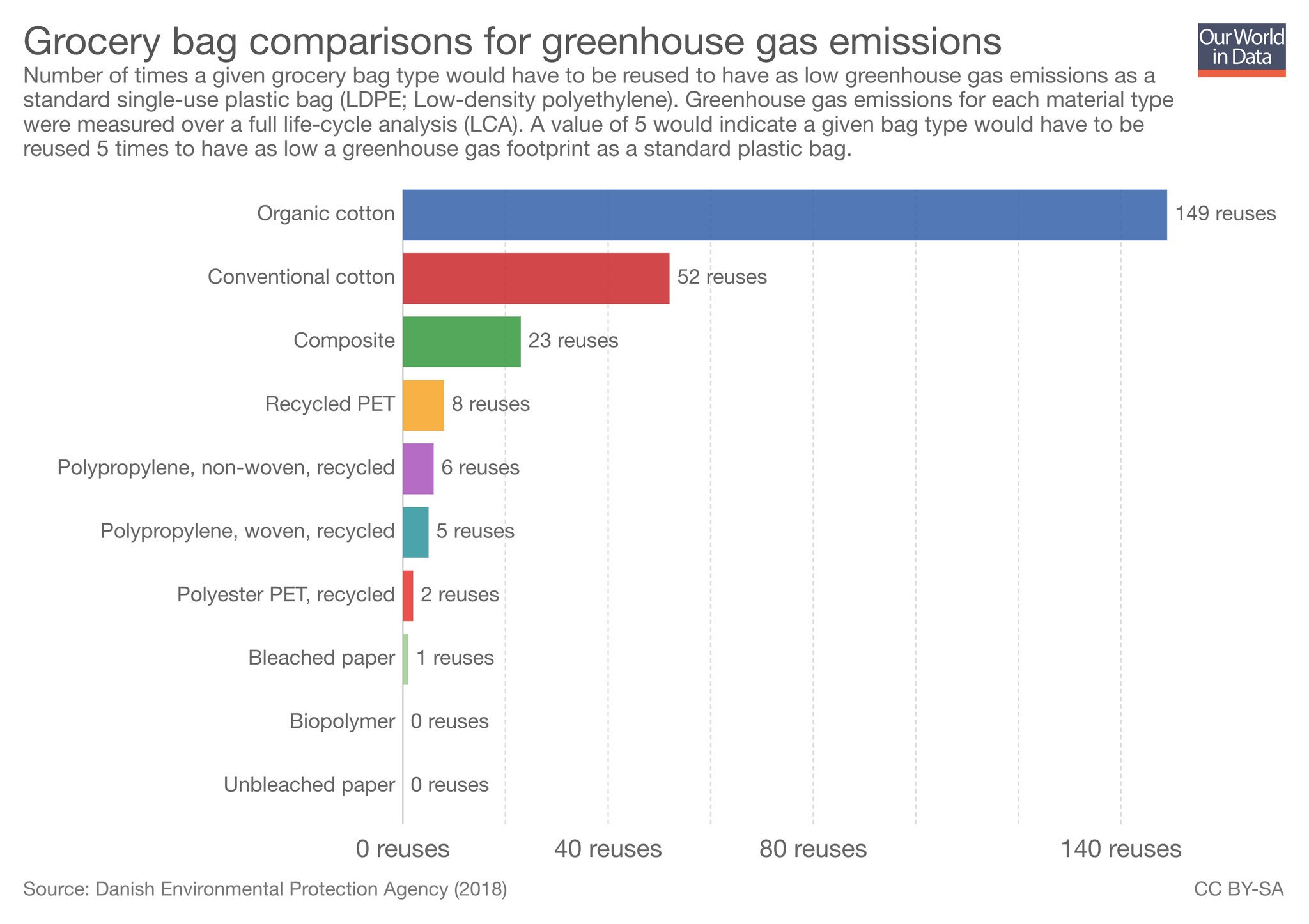 On a ici une analyse multi-paramètres : matériau, process de production, recyclage et même type de sac (résistance)… trop complexe pour pouvoir en tirer une conclusion solide.