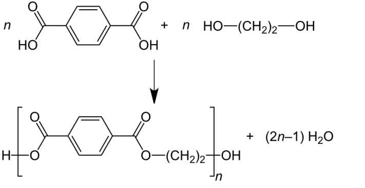 Le PET est un polyester, et si vous vous souvenez de vos cours de chimie du Lycée, vous savez qu’un ester est obtenu par la condensation d’un alcool + un acide. La réaction est RÉVERSIBLE. Si on évacue l’eau formée, on déplace l’équilibre réactionnel vers la création d’esters. Par contre si on ajoute de l’eau, on décompose l’ester pour donner un acide et un alcool.