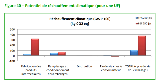 Un comparatif réalisé de manière indépendante avec un gros fournisseur de bouteilles de jus de fruit en PET aurait été beaucoup plus pertinent. Le contrôle des données d’entrées aurait pu être fait par un organisme externe, via audit et analyse documentaire.