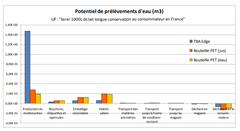 En aparté : si on regarde l’impact en terme de quantité d’eau consommée, (j’ai trouvé l’info dans une autre étude de TertraPak), les briques ont un impact bien plus important. Mais ça reste le seul où les produits TetraPak sont plus impactants que les bouteilles en PET
