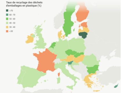 Pas de conclusion sur la France. Dommage on aurait pu constater que notre production de déchets plastiques est dans la moyenne européenne mais qu’on doit faire un effort plus important dans le recyclage et donc dans le tri.