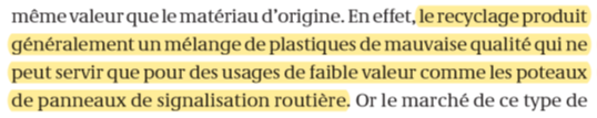 Vous ne retrouverez pas cette analyse dans le texte. L’information est donc partielle dans le document. Il aurait également été plus honnête de préciser que dans l’union européenne, les déchets plastiques ne représentent que 19% des déchets générés… (chiffres Eurostat)