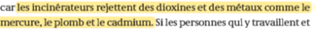 Je précise qu’il y a une réglementation sur ces installations industrielles. Et qu’à moins de nous dénicher une étude sur le sujet, cette affirmation est gratuite. S’ils ont des preuves, qu’ils n’hésitent pas à dénoncer rapidement les sites qui seraient hors cadre réglementaire. Il est probable qu’ils confondent rejet et retombés atmosphériques, ces derniers n’étant actuellement pas de seuils réglementaires, qui nécessite un recul sur les impacts environnementaux et sanitaires.