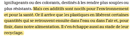 D’après les auteurs, le plastique est à l’origine du tout jetable. Sans préciser qu’il est à l’origine de grandes avancées technologiques : médical, transports, construction…et emballage. C’est précisé dans un autre chapitre mais pas ici où on le définit dans la société.