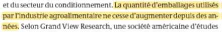 L’affirmation suivante est partielle puisque les industriels réduisent les épaisseurs et quantités d’emballage. En parallèle, la demande d’emballage notamment des pays en voie de développement est importante. Quid de la comparaison avec les autres matériaux ?
