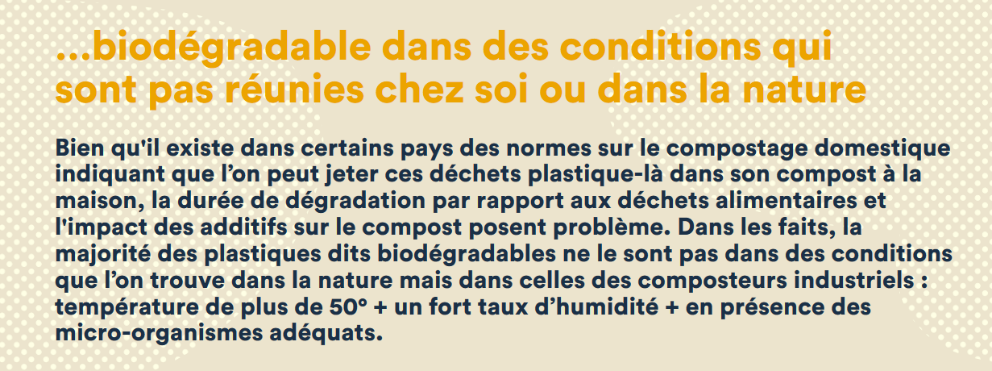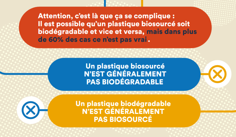 Le terme « biodégradable » est associé à la fin de vie du matériau pas à son origine. Il y a donc un amalgame.