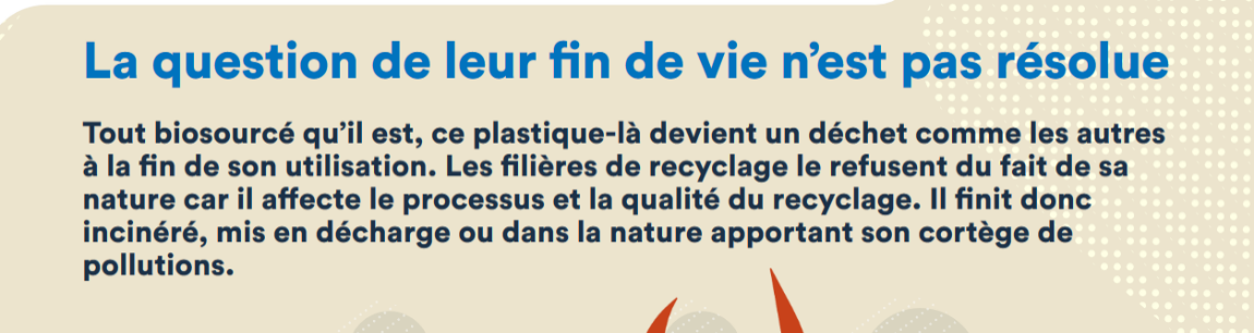 Mais c’est le cas de n’importe quel plastique mis sur le marché sans que la fin de vie ne soit anticipée. Quelle que soit son origine. les déchets issus de ces nouveaux matériaux mis sur le marché doivent entrer dans une filière de valorisation .
