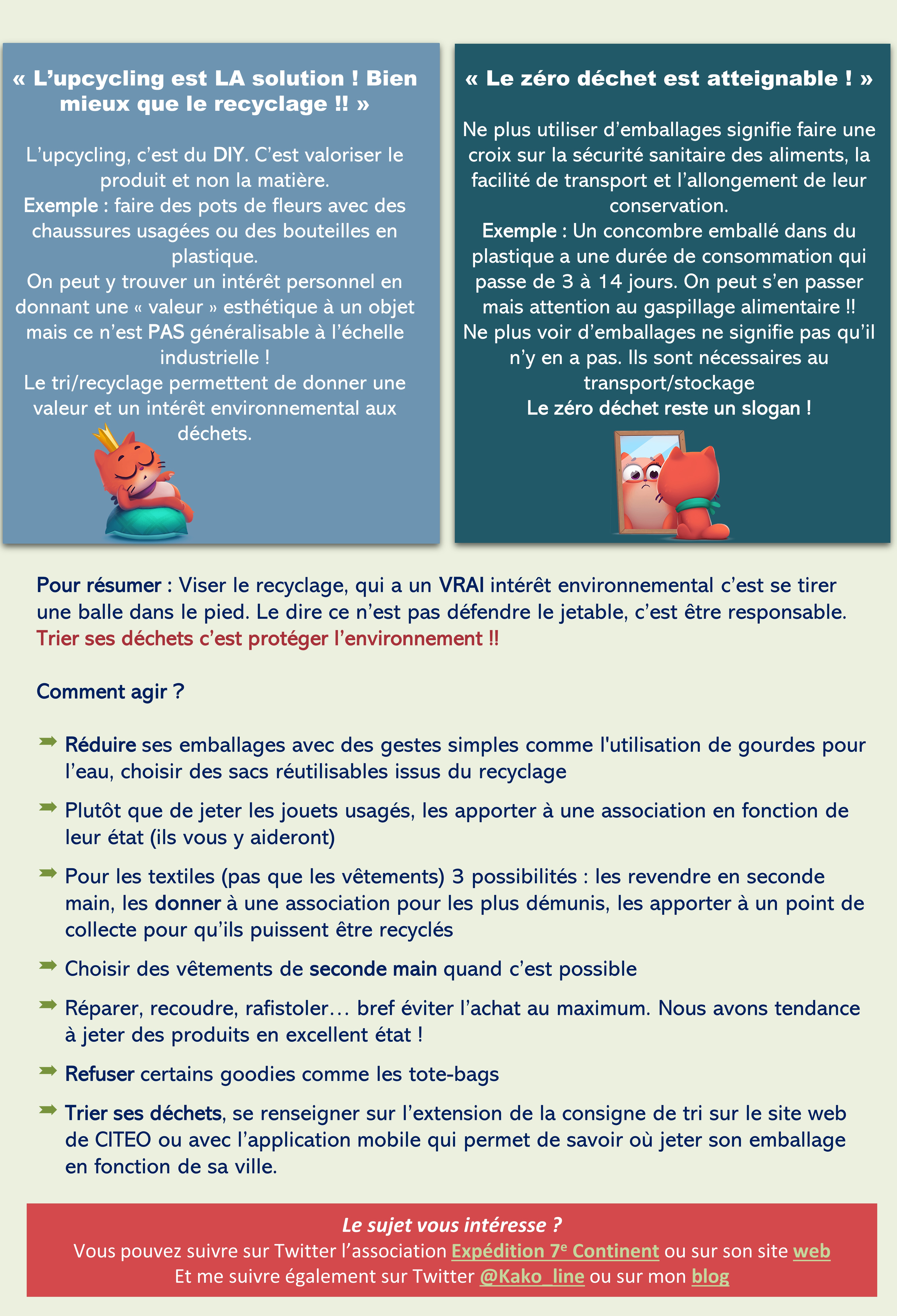 J’ai repris une idée de l’association ZéroWaste France pour proposer ces infographies qui, je l’espère, vous permettront de répondre aux idées reçues sur le recyclage.