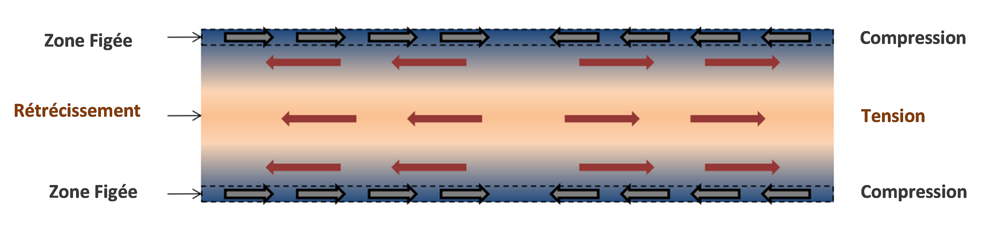 La surface est donc soumise à des contraintes de traction tandis que le cœur est soumis à des contraintes de compression