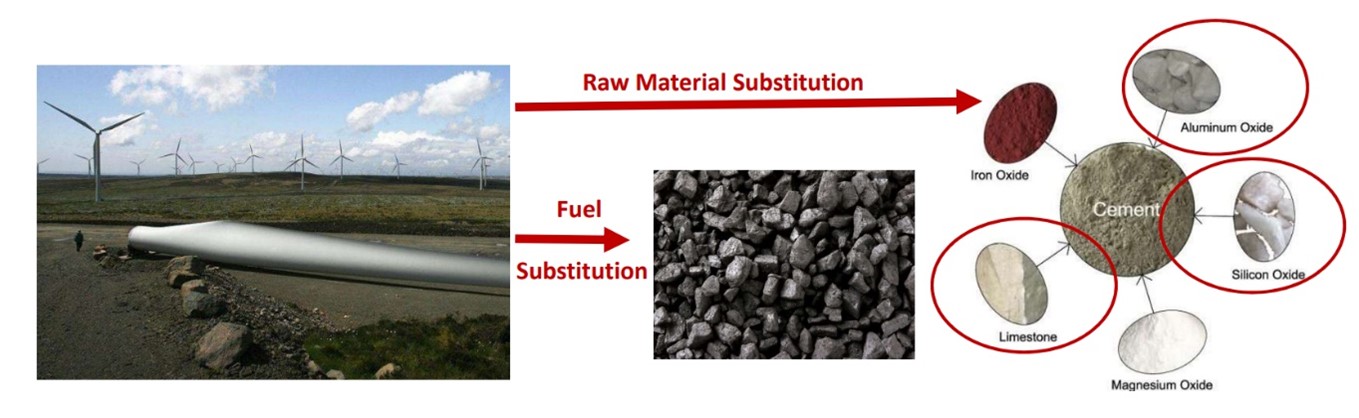 L’objectif de cette valorisation est d’utiliser les pales broyées comme combustible, en remplacement du charbon/fioul, et comme matière première directement dans le four pour la fabrication du ciment en remplacement de certains minéraux. C’est le co-processing ou co-traitement.