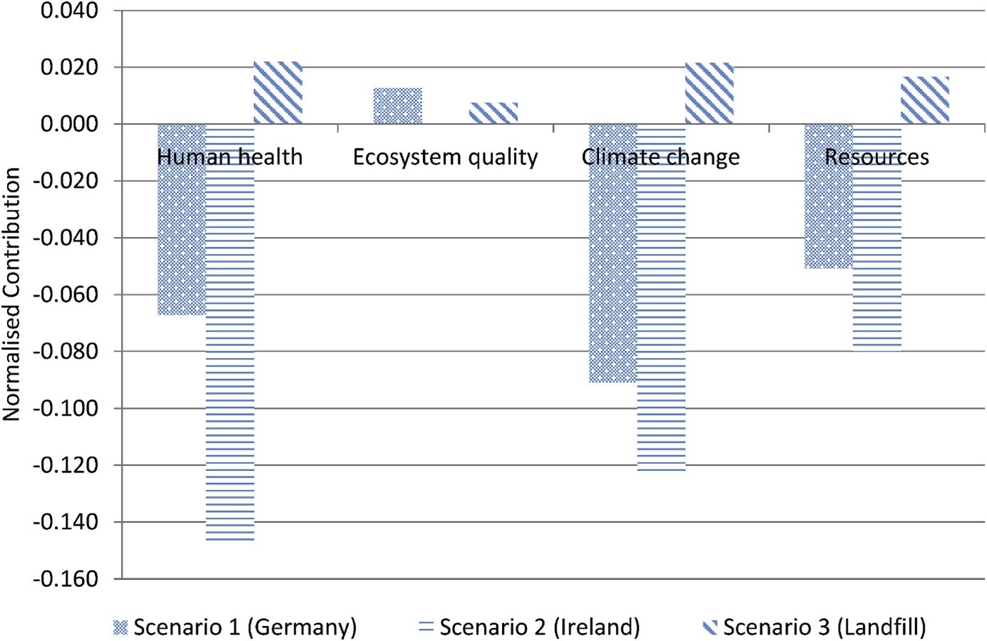 Une analyse de cycle de vie a étudié l’intérêt de ce process par rapport à l’enfouissement. L’analyse est réalisée dans le contexte Irlandais. Il y a 3 scenarios avec des pales issues d’Irlande: