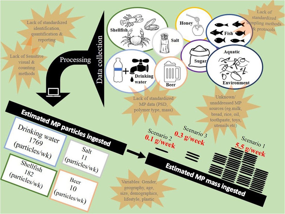 Il détermine par calcul les quantités théoriques de microplastiques (MP) que nous ingurgitons, à partir d’articles scientifiques déjà parus.