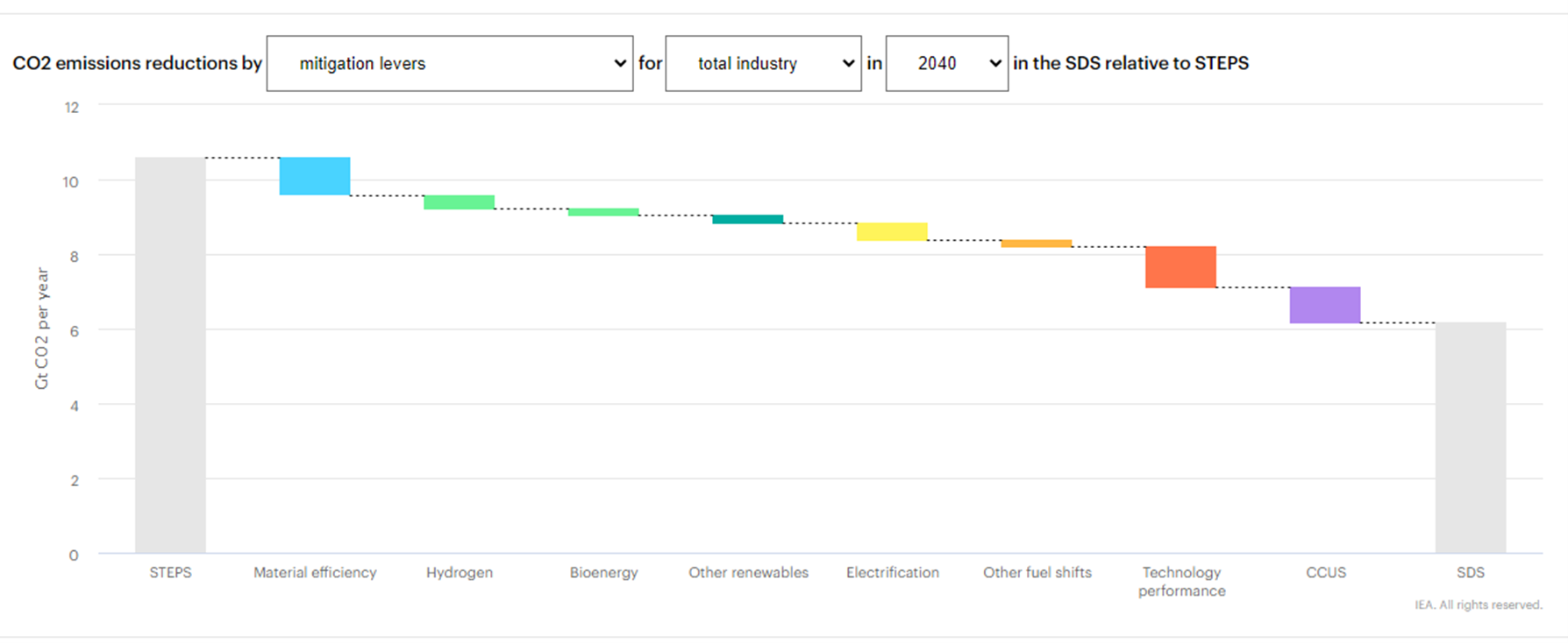 D’après l’IEA, les principaux leviers pour la réduction des impacts du béton sont l’énergie utilisée, la composition/performance du matériau et… le piégeage CO2. Dommage que ces axes n’aient pas été présentés.
