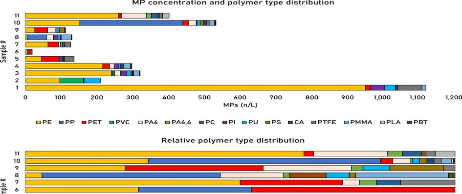 Comme dans cet article qui compare 10 marques de bouteille d’eau et l’eau du robinet. Cette dernière (échantillon n°11 sur le graphe) présentant plus de MP que 8 eaux en bouteille sur 10. Ça remet en cause sur son affirmation sur l’eau du robinet.